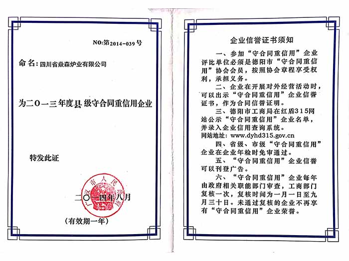 四川省焱森爐業有限公司注冊資金1200萬元,生產車間近1萬平方米,是一家集生物質爐研發、設計、生產、銷售、服務、技術咨詢于一體的國家高新技術企業。公司技術力量雄厚,生產設備齊全,工人技術熟練,所有產品嚴格按照國家相關標準及ISO9001:2008質量管理體系實行模具化、規范化生產,年產能力達15萬臺以上。公司擁有建全的14001環境體系認證及18001職業健康安全體系認證。我公司擁有自己的知識產權及自主品牌“焱森”,是國家高新技術企業,擁有54項專利。